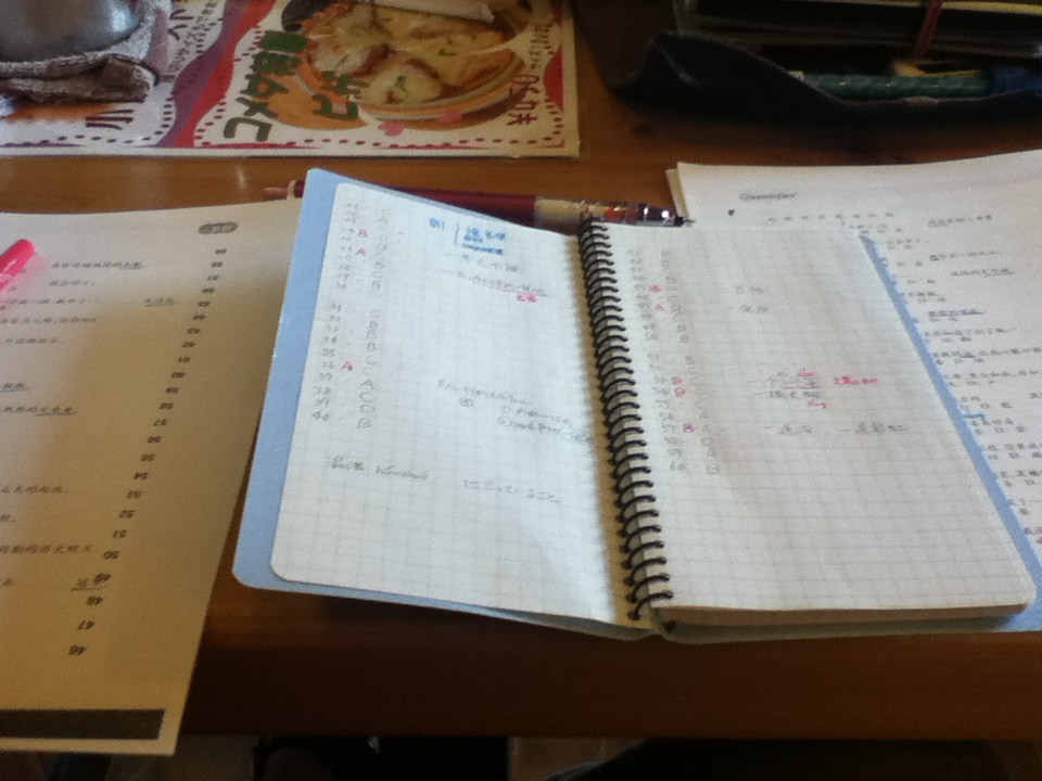 持ち歩きに便利なようにコピーもとったし、暗誦すべき文章は写真真ん中の小さいノートの後ろから書いておきました。