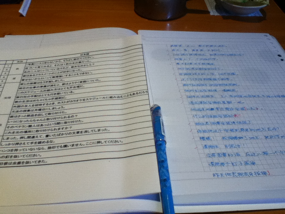 こちらはexcelで日中両方の文をだばっと打ち込んでおいたのでそれを今週の課題文だけ印刷して持ち歩いています。