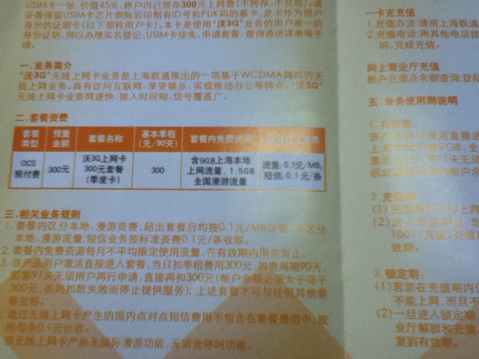 300元分の上網費が入っています。季度卡という名前です。